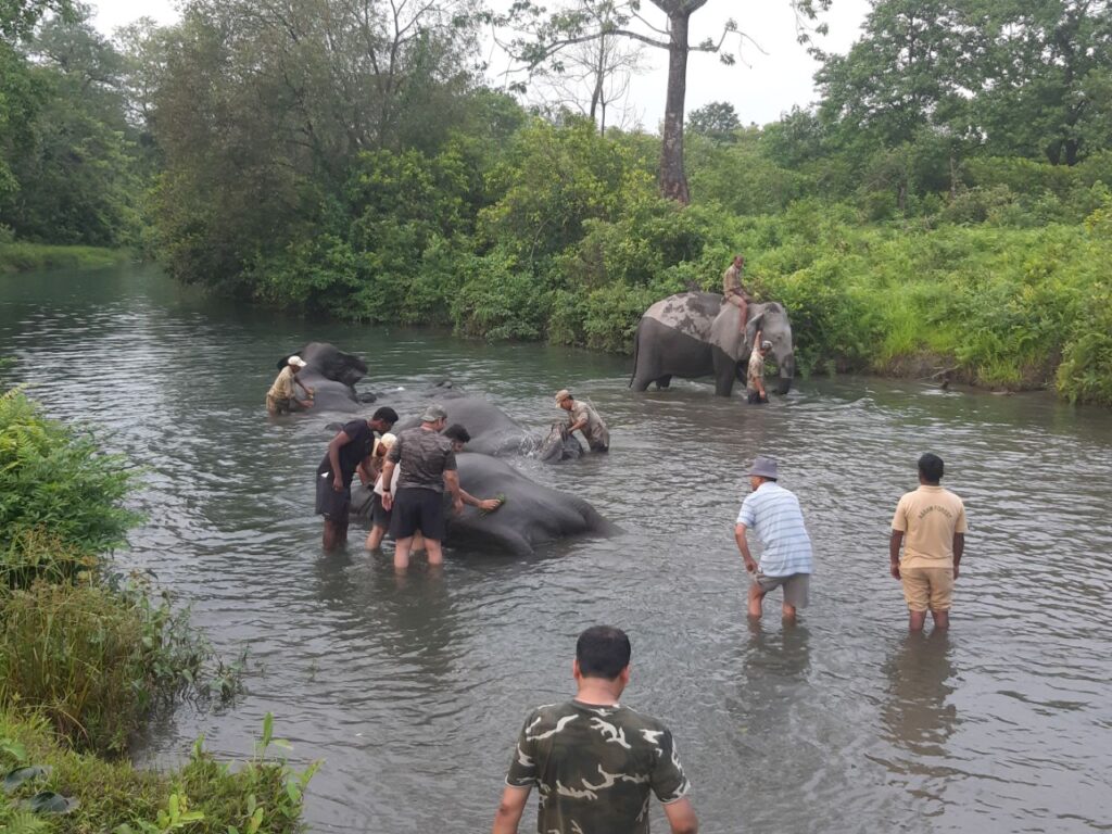 Departmental elephants are an integral part of wildlife conservation at Manas. While going on routine patrols with frontline forest personnel, these elephants play an important part of managing human wildlife conflicts, by driving wildlife back into the forest while helping our veterinarians to dart and capture wild animals, where required.